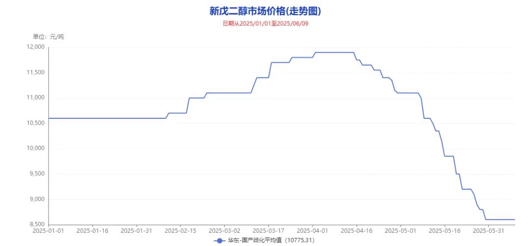 又有原料正在经历价格“过山车”!2025年5月,新戊二醇价格迎来了戏剧性转折,从年内高点急速下探至成本线附近。