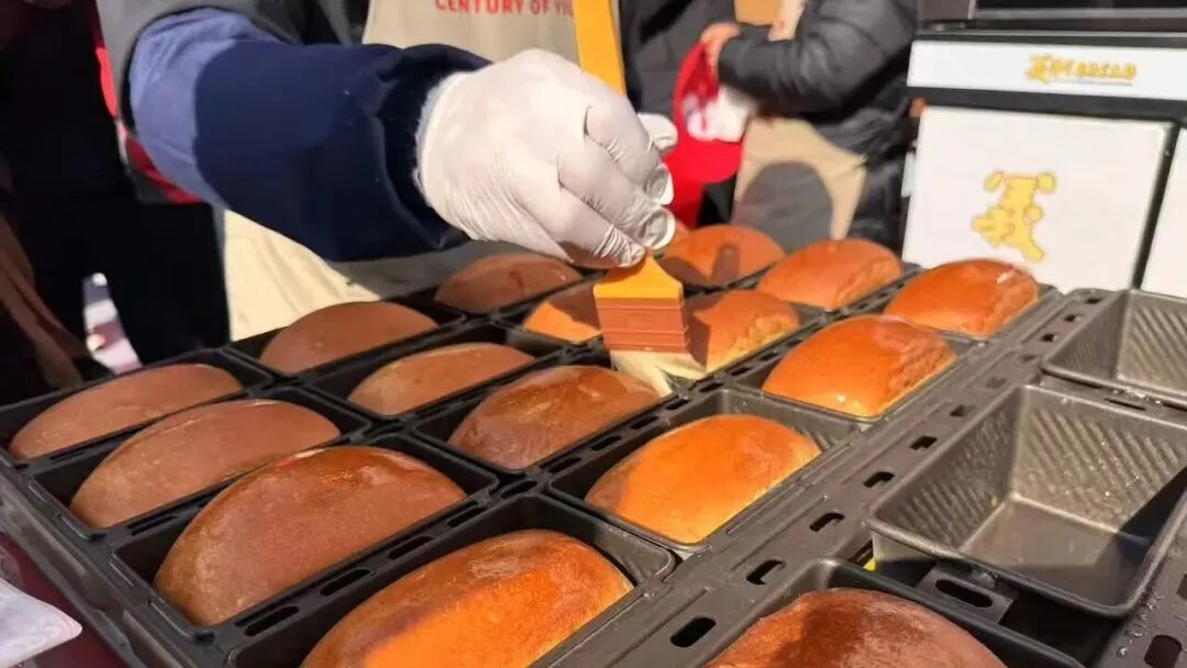 在隆福寺新春市集的义利面包摊位