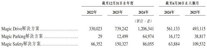 但行车解决方案业务增长的背后也面临挑战。2025年上半年,行车解决方案业务的销量为493115套,同比下滑12.12%,成为唯一销量下滑的业务板块。在此之前,该业务销量就已显露出增长放缓的趋势,2023年和2024年,其销量同比增速分别为124.00%和63.19%。或许暗示着市场竞争白热化导致魔视智能的生存空间遭受挤压,或者技术迭代方向与市场需求及行业趋势出现了错配。